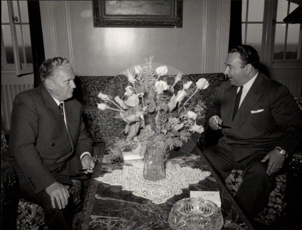 On the photo, we see a scene showing them “at close quarters”: “Yugoslav head of state, Marshal Tito (left), receives the Costa Rican ambassador, Teodoro B. Castro (right), on April 27, 1953.” Wikipedia explains that “Ambassador Castro was in fact a Soviet illegal agent, Iosif Grigulevich, who, under orders from Stalin and the NKVD, was plotting to assassinate Tito.” The same photo is also on the website Muzej istorije Jugoslavije, as “Prijem Teodora Kastra, poslanika Kostarike”, however, without commentary: