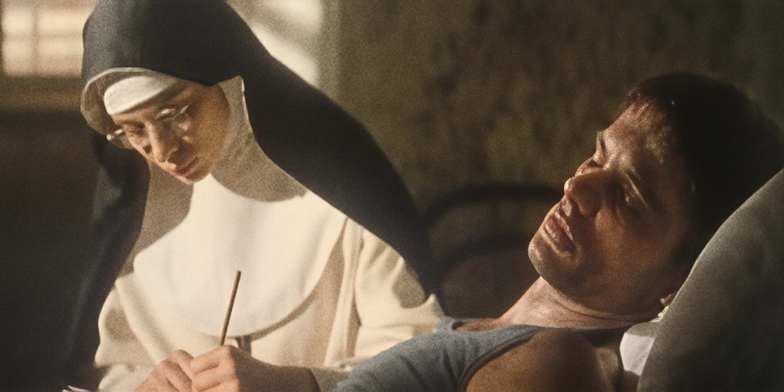 U prostorima samostana i crkve gdje je Bog u svakome kutku tišine prizvan predanim molitvama klarisa i sestre Benedikte (stamena pojava Milke Podrug-Kokotović), poglavarice odlučne u stavu kako progonjenome treba pomoći i skriti ga od pomahnitalih komunističkih „pasa“, prisutna je i Sotona, koja vreba iskušavajući sve sestre u njihovu poimanju milosrđa (autentične glume Urše Raukar i Doris Šarić Kukuljice). Pojava novoga čovjeka u intimi njihove „kuće“ izaziva nemir, tjeskobu i iskre malodušnosti, a kod jedne sestre i potrebu za brzom, nepromišljenom izdajom. Fra Odoriko međutim zna s kojim vjetrom Sotona dolazi i to baš pred Vazam kad i najviše izaziva vjernike maloga rapskog mjesta. Sonorna teatarska „deklamacija“ Josipa Gende (uz ekspresivnu glazbenu matricu) savršeno podcrtava otočki mir u kojemu je on posvećen svojim kronikama i ljekovitosti pisanja. U njegovu liku Gamulin daje primjer Crkve koja je i u mraku jugoslavenskoga komunizma bila uz svoj hrvatski narod, svjesna potrebe da povijest žrtve nikada ne klizne u zaborav! Začetak platonske veze između sestre Klare i Bjegunca napetoj radnji donosi nakratko smiraj i prava je šteta što je ta epizoda dramaturški ostala „visjeti u zraku“, bez obzira na to što bi nekakav ljubavni ishod između njih dvoje bio promašeni ustupak gledatelju. Klara utjelovljuje bezuvjetnu ljubav, istinski caritas, ona je spremna na koljenima klečati pokornički, idući uz strmi šljunčani put, samo kako bi od lokalnoga liječnika (sugestivno ga utjelovljuje Tonko Lonza) izmamila nekoliko doza penicilina za Ranjenika čiji lik filmski iznosi mladi Rene Medvešek, vrlo uspješan u ekspresiji Bjegunčeve duševne i tjelesne boli. Od njegova dolaska u samostan, u kojem se stvarnosno ogleda križni put osuđenika, na kojemu ima i onih koji ga ne žele podržavati (neurotična ponašanja pojedinih sestara), ali ima jedna Veronika (Klara), jedan Šimun (fra Odoriko) - otočani više ne žive u miru.